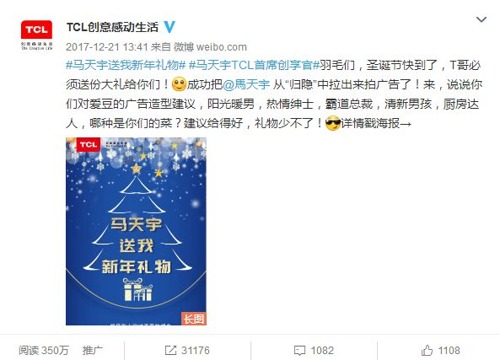 只請了馬天宇作TCL的品牌創享官