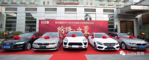 新年伊始,佳比集團第二次授車儀式在廣州南方毅源大酒店舉行,佳比集團三位創始股東夏永新、黃小峰、吳明峰及董事會成員分別為集團湖南分公司銷售總監楊銀 、集團廣東區域銷售總監陳潔瓊、集團廣西區域銷售總監李春林、集團湖南分公司銷售經理姜政林、集團深圳區域銷售總監羅迪平 五位銷售管理層授車,給他們配備價值40-60萬元不等的保時捷、奔馳、寶馬、奧迪各一輛,表彰他們通過長期的努力所取得的驕人業績。