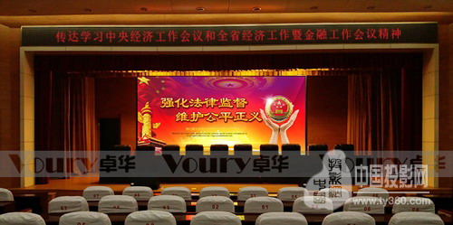 目前,Voury卓華產品成功應用于聊城市人民檢察院電子檢務平臺。該平臺套屏項目分為報告廳拼接大屏及兩個大廳拼接屏,分別采用Voury卓華微間距ZHVW-200、ZHVW-250LED顯示屏,采用國際領先的逐點校正技術,利用先進的綠色還原及膚色還原功能,廣播級色域為客戶帶來真實感官體驗。