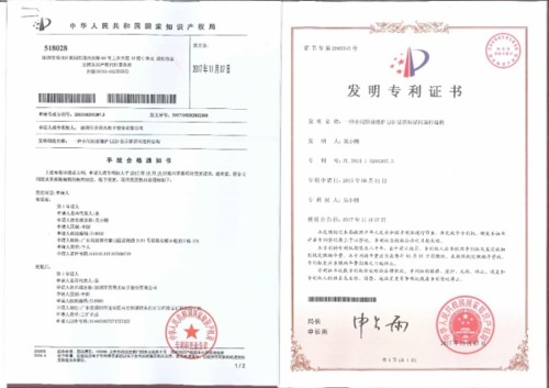齊普光電的小間距產品在上個月一下拿到了3個國家級發明專利和1個認證: