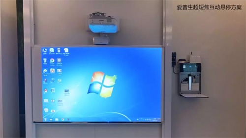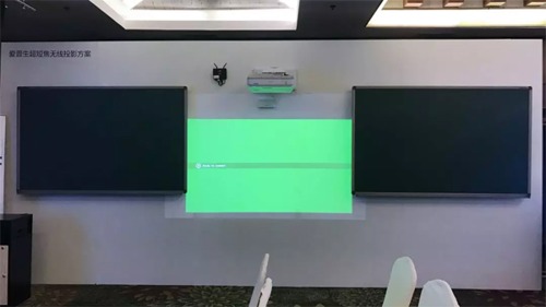 在全新的教學模式下,部分老師仍然習慣用粉筆在綠板上書寫重點,愛普生通過CB-710Ui和兩塊萬向綠板打造了超短焦無線投影方案。