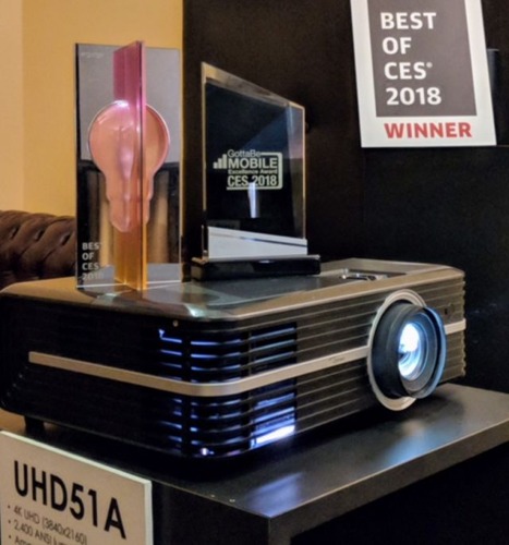 憑借高質量的投影性能,超4K品質的投影水準及智能語音交互系統,奧圖碼UHD51A 4K超高清語音智能家機被CES官方合作媒體Engadget評選為“最佳家庭影院產品”,同時斬獲了Gotta Be Mobile “ CES 2018最佳產品”的榮譽稱號。