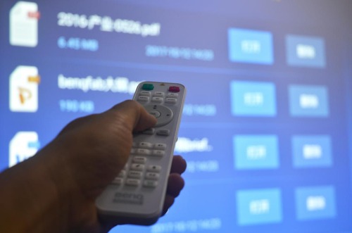 劉備平靜微笑,打開桌上的投影機,掏出手機唰唰唰點了幾下,正前方的墻面居然投出畫面。然后劉備的手指繼續在手機上劃,畫面也隨之跳轉,和遙控器似的。