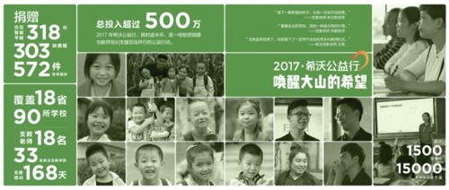 2017年,希沃發(fā)起“喚醒大山的希望——2017希沃公益行”,為全國18個省共90所學校了捐贈了318臺交互智能平板設備,并組織18名一線教師和33名希沃支教講師團隊一起深入大山,助力鄉(xiāng)村教育信息化事業(yè)的發(fā)展,超過1500名鄉(xiāng)村教師,15000名學生從中受益。