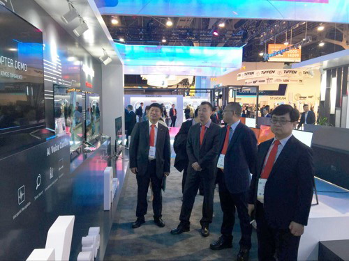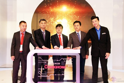 舊金山總領事館副總領事任發強、中國機電產品進出口商會副會長王貴清、CES組委會國際副總裁(CAT)Brian Moon與長虹控股公司總經理李進、股份公司總經理李偉共同為長虹展區開館啟動。