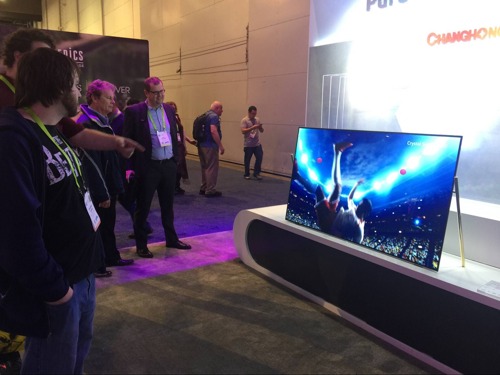 ▲外國友人對OLED屏幕自發聲電視產生濃厚興趣