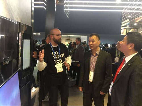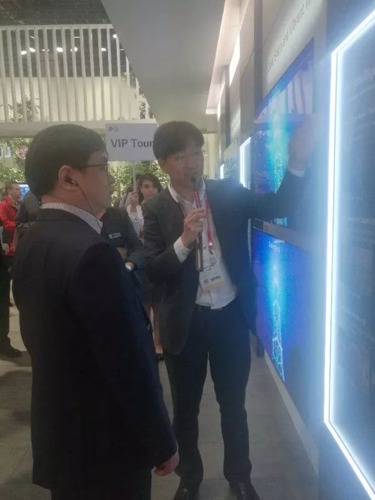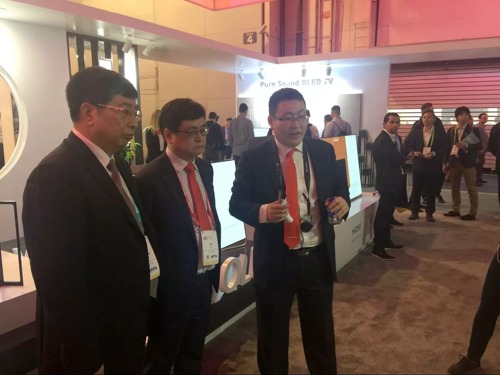 展會期間,控股公司總經理李進、控股公司常務副總經理楊軍在三星、LG展區觀摩學習。