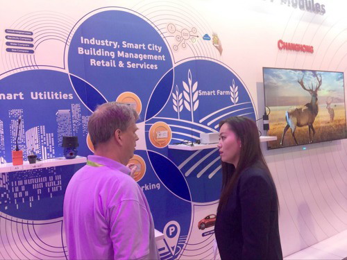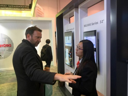 ▲長虹北美中心市場經理給客戶介紹長虹產品