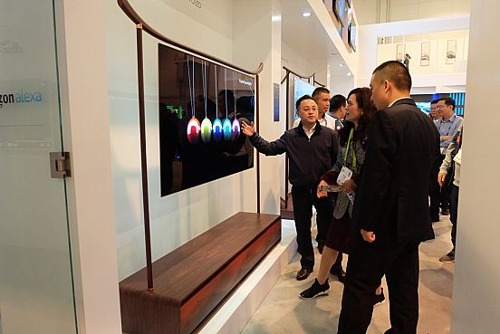 在眾多科技感十足的產(chǎn)品中,康佳集團(tuán)展出的次世代OLED新品電視以優(yōu)雅簡(jiǎn)潔的設(shè)計(jì)成為本屆CES全場(chǎng)吸睛焦點(diǎn)。康佳以木為主要設(shè)計(jì)元素,將電視底座和機(jī)身完美結(jié)合,外形以中國(guó)風(fēng)底座為設(shè)計(jì)亮點(diǎn),內(nèi)部搭載人工智能、平面發(fā)聲、無(wú)線傳屏幕等多種黑科技,將藝術(shù)與科技完美融合,打造出具有中國(guó)山水般意境的原木風(fēng)格電視。