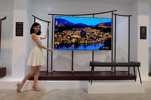 屏風(fēng)式分體電視77ART-W,采用我國(guó)經(jīng)典屏風(fēng)與古琴形式,整體設(shè)計(jì)氣勢(shì)磅礴,而酷炫的無(wú)線傳屏功能,則能保證音畫完美同步。而65ART-P采用明清家具的風(fēng)格和玻璃印染,使電視仿佛懸空于云霧之上,縹緲半透。