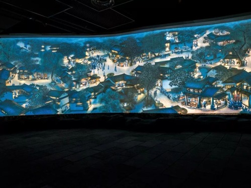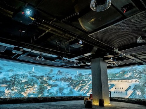 長(zhǎng)100米、高3米的納西風(fēng)情圖是納西文化體驗(yàn)館的鎮(zhèn)館之寶,是國(guó)內(nèi)首個(gè)百米動(dòng)態(tài)民俗風(fēng)情長(zhǎng)卷,整副風(fēng)情圖采用了20臺(tái)Vivitek(麗訊)DU7090Z激光工程投影機(jī),20通道畫面拼接融合打造。畫面靈動(dòng)多彩、細(xì)節(jié)畢現(xiàn),生動(dòng)形象地展示了納西的風(fēng)土人情、傳統(tǒng)景致,再現(xiàn)了明朝最鼎盛的木府時(shí)代。