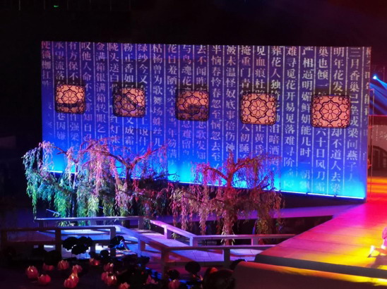 閉幕式演出中,由6臺(tái)NEC PH3501QL+雙色激光高端工程投影機(jī)分別打造的巨幅投影畫卷和兩側(cè)投影畫面,對(duì)揚(yáng)州特色文化進(jìn)行了全新的演繹。依托NEC工程投影構(gòu)建的如夢(mèng)似幻的場(chǎng)景,傳統(tǒng)的文藝表演被賦予了大氣磅礴的背景。一幕幕精彩紛呈的畫面不斷變換,向人們講述著“揚(yáng)州八怪”、“琴棋書畫”、“二十四橋明月夜”等耳熟能詳?shù)那険P(yáng)州文化歷史。