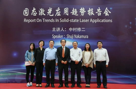在航空工業上電舉行的“固態激光應用趨勢”報告會上,2014年諾貝爾物理學獎獲得者、藍光LED與藍色激光二極管發明人中村修二教授應中航國畫邀請,作了題為《藍色激光二極管的發明及未來激光照明》的報告,與我們分享了激光光源的發展歷史和廣泛的應用前景。