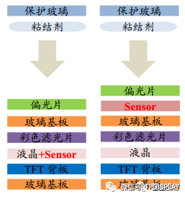 圖6:In-cell(左)和On-cell(右)內嵌式觸控技術結構示意圖