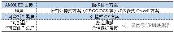 表2、AMOLED硬屏與柔屏的觸控技術方案比較