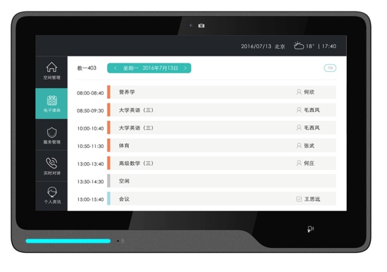 課表查詢:查詢當(dāng)前教室老師/學(xué)生個人全天課程安排及使用狀態(tài)