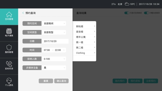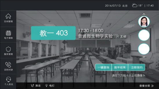 空間預(yù)約:老師/學(xué)生在任意終端隨時查詢可用教室資源信息,并預(yù)約使用。