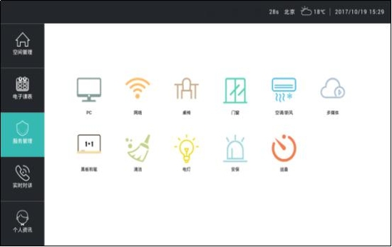 服務(wù)內(nèi)容可根據(jù)用戶自定義添加(如PC、網(wǎng)絡(luò)、桌椅、門窗、空調(diào)/新風(fēng)、黑板和筆、清潔、電燈、安保、巡查等內(nèi)容)。