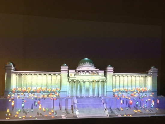 方案以一臺6000流明、1080P分辨率的明基激光工程機為主投投影機,結(jié)合展示對象、高級仿真圖像計算集群和相關(guān)輔助配件,來營造高度真實感、立體感的三維場景,聲、光、電相輔相成,引人駐足贊嘆。