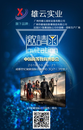 中國高等教育博覽會(2018.秋)將于2018年10月19-21日在成都世紀城新國際會展中心舉辦,雄云實業期待與您的重逢!