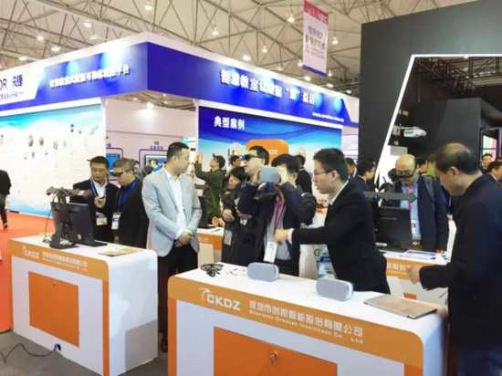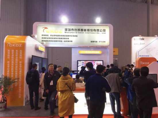 創凱智能憑借長期在視音頻圖像處理領域以及服務教育信息化建設積累的深厚經驗,在2D01展位以互動、分享的形式向大家展示3D/VR多學科探究教室解決方案、CKPAD硬件式交互平板和高等院校、職業學校虛擬仿真實驗教學平臺。開展第一天,展臺前門庭若市,吸引眾多媒體和觀眾駐足。