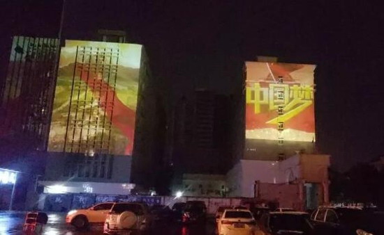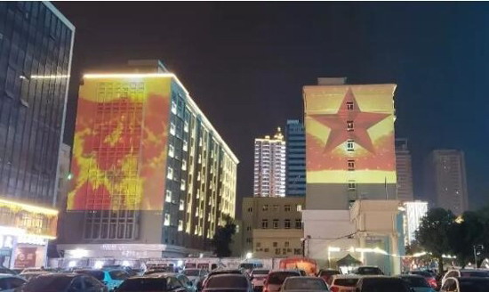 其中有兩棟樓體建筑,用的就是DET 6臺(tái)18000流明的激光工程投影機(jī)DET-S18K來展現(xiàn)。通過投影方式,結(jié)合建筑的外形與構(gòu)造,把畫面直接投射到建筑的立面上,呈現(xiàn)獨(dú)特的光影效果的燈光秀形式。