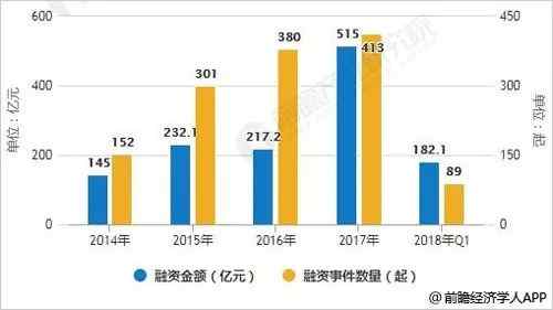 2017年人工智能首次寫入政府工作報告,上升到國家戰(zhàn)略高度。2017年7月,國務(wù)院發(fā)布《新一代人工智能發(fā)展規(guī)劃》,這是中國首部國家層面的人工智能發(fā)展規(guī)劃。規(guī)劃提出了人工智能在中國“三步走”的戰(zhàn)略目標。2018年3月,人工智能再次寫進政府工作報告,人工智能行業(yè)正迎來最好的時機。隨之而來的是大量資金開始涌入這一領(lǐng)域,融資金額也屢屢創(chuàng)下紀錄。