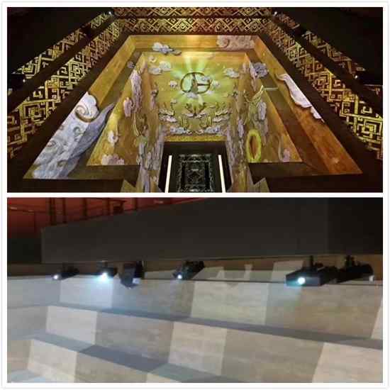 馬王堆(上)辛追墓坑內使用科視Christie HS系列投影機(下)打造瑰麗畫面(照片來自贏康科技)