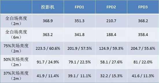 從亮度衰減及對比度的測試數(shù)據(jù)上看,如果教室選用投影機(jī),后排同學(xué)不會因?yàn)榫嚯x遠(yuǎn)帶來的亮度衰減而有觀看障礙,進(jìn)而導(dǎo)致視覺疲勞和視力損傷。