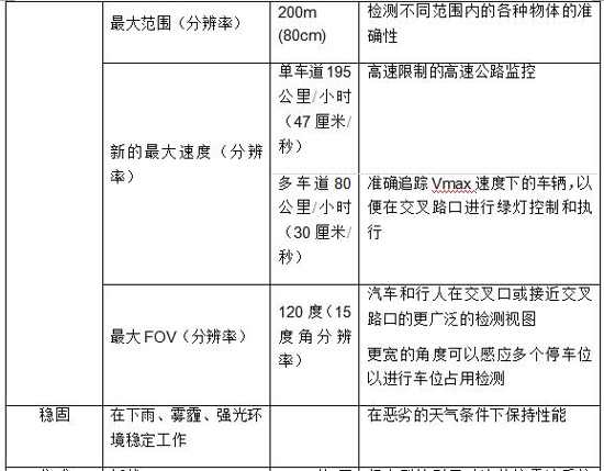 最大FOV(分辨率) 120度(15度角分辨率) 汽車和行人在交叉口或接近交叉路口的更廣泛的檢測視圖