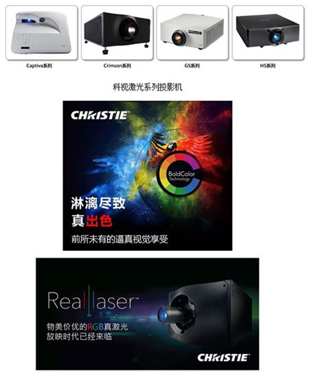 本次展會(huì)共有十余項(xiàng)展出項(xiàng)目,包含了科視多種激光光源技術(shù),從科視Captiva系列、HS系列、GS系列、Crimson系列到最新推出的D4K40-RGB投影機(jī);亮度覆蓋從4000流明到最高的40000流明,范圍十分廣泛;擁有多種分辨率,包括HD、WUXGA、WXGA、4K等;還包含了科視 BoldColor技術(shù)、RealBlack技術(shù)、Christie RealLaser技術(shù)。