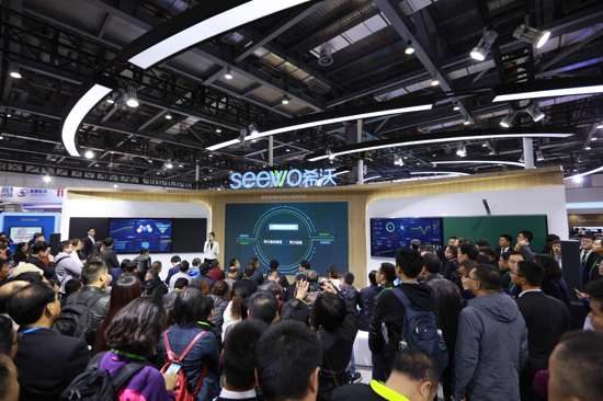 作為本屆獨家冠名商,希沃展位比往屆人氣更加火爆。開展首日就迎來了人流量高潮,主講區和三大新品展示區都擠滿了熱情的參展觀眾。