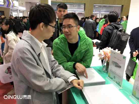 青鹿工作人員向觀眾介紹青鹿智慧課堂產品