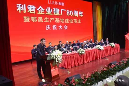 八十年的榮耀與艱辛,八十年的成就與汗水,利君企業曾經為抗日戰爭、解放戰爭的勝利及邊區人民的制藥療傷,做出過突出貢獻;曾經為社會主義建設和短缺醫藥,做出過突出貢獻。毛澤東、江澤民兩代領袖更曾為企業親筆題詞。而在今日利君企業建廠80周年慶祝大會的重要歷史時刻,聯建光電見證了這一榮耀時刻并獻出了自己的祝福,實感榮幸。十余年來,聯建光電一直以“全球數字顯控系統提供商”為定位,秉承著用戶至上的理念,在業內樹立了良好的口碑。未來,聯建光電將向利君企業看齊,不斷向著更高技術、更優服務、更硬質量邁進,致力于為每一位客戶提供專業的LED顯示系統解決方案,打造百年品牌,讓“中國智造”走向全球!