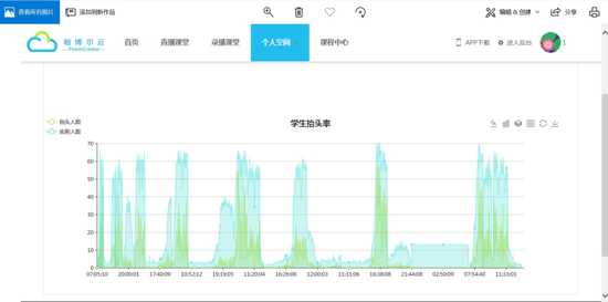 通過人臉識別技術可以實現學生抬頭率的統計,根據自定義時間節點自動抓拍課堂中學生畫面,自動生成課堂活躍度曲線,為提高教學質量提供有效的依據,提供每個時間節點中實到人數和聽課人數統計圖片進行參數驗證。