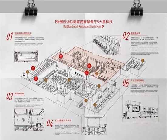 海底撈智慧餐廳位于北京中駿·世界城E座B1層,除了之前流傳出來的傳菜機器人,智慧餐廳還深藏5大黑科技,讓我們走進海底撈,一探究竟吧!
