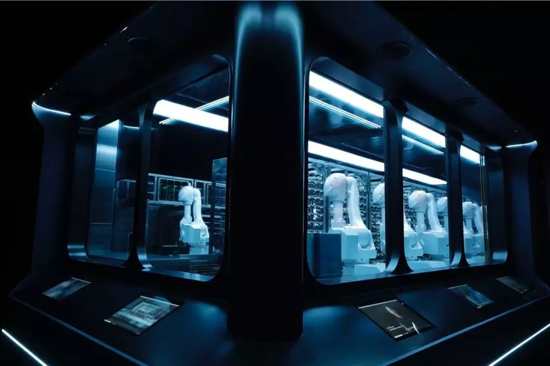 和等位區相對的,就是智能菜品庫。透過玻璃櫥窗看過去,科技感十足機械臂特別吸睛,這也是智慧餐廳的必看景點。全程0-4℃全封閉式太空艙,機械臂自動完成菜品入庫、上菜,徹底實現“無人化”。