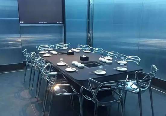 包廂環境也可以通過燈光切換氛圍,墻面上可觸控屏幕可鏈接客人電腦,服務于小型會議。就連椅子都是意大利進口。