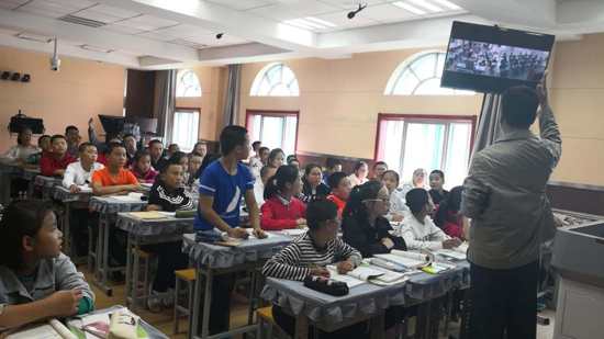 圖為安崖九年制學校聽課教室同步數學課的上課場景