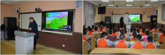 圖為流水溝小學聽課教室同步語文課時的上課場景