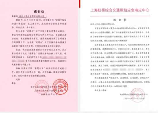近日,大華股份收到了來自上海市公安局、青浦公安分局、長寧公安分局、上海虹橋綜合交通樞紐應急響應中心等部門送來的感謝信,對大華股份圓滿完成首屆進博會安保任務所做出的大力支持和無私奉獻,給予充分肯定和衷心感謝。