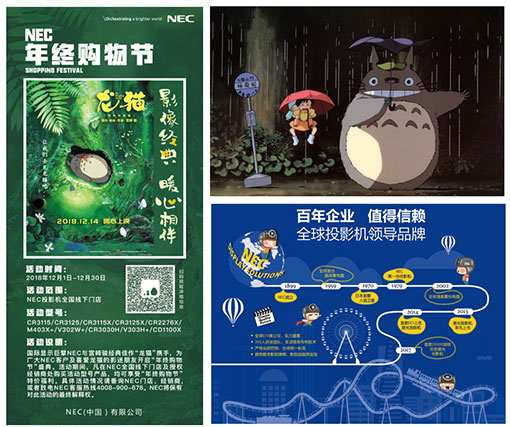 為了讓更多的用戶體驗到匠心與創新技術融合的商務投影產品的魅力,NEC與宮崎駿經典佳作“龍貓”攜手,在12月1日至30日期間,為廣大NEC客戶及喜愛龍貓的影迷朋友開啟 “年終購物節”狂歡盛典。活動期間,凡在NEC全國線下門店及授權經銷商處購買NEC CR3115、CR3125、CR3115X等十款熱賣產品,均可享受“年終購物節”特價福利。具體信息敬請垂詢NEC門店及經銷處,或者致電NEC客服熱線400-8900-678了解活動詳情。同時,“NEC年終購物節”線上活動包括京東官方旗艦店NEC CD1100、CD2115X;天貓官方旗艦店NEC CD1100X、CD1010H在內的商務投影機低價熱銷,引爆消費者的購物熱情。(NEC將保有對此活動的最終解釋權)
