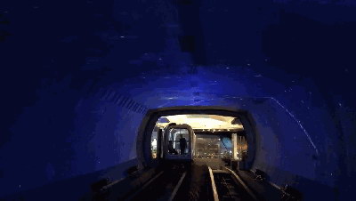 當進入到“巖漿噴射”區域,各處是耀眼的燈光,如同巖漿沸騰噴涌的場景。隨著列車的前進,突破底層,進入深海,最終沖出海洋,飛向了宇宙。在臨近浦西站終點段,游客仿佛在流星飛逝的宇宙空間暢游。