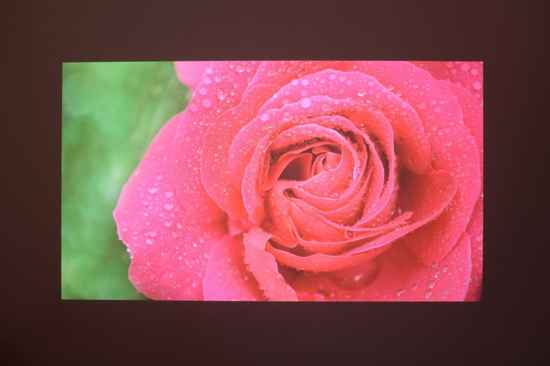 明基i705投影畫質清晰自然,投放的流明度達到了2200ANSI,這也保證了它能白天觀影沒壓力。所看到的畫面色彩還原度高,并且加1920×1080分辨率的加持下,畫面清晰自然,就連花瓣上沾有的雨露都能清晰可見,并且花瓣的紋路依舊可見,畫質細膩感還是不錯的。此外,畫面飽和度也很高,將物體的特點淋漓盡致的展現出來。
