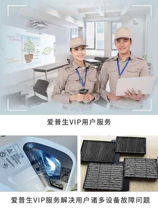 深耕投影機市場多年的愛普生,為教育用戶帶來諸多創新產品及方案的同時,圍繞著“顧客第一”的經營理念,在服務層面上不斷創新。愛普生VIP服務從用戶需求出發,對用戶的教學投影機進行深度維護保養,為教師們的安心教學提供多方位守護!