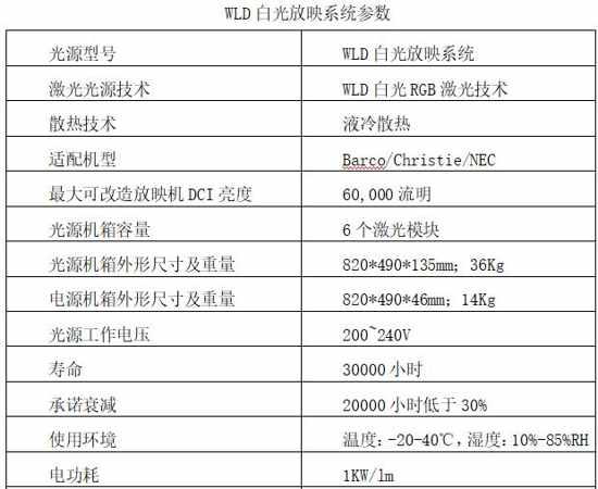 WLD白光放映系統(tǒng)參數(shù)