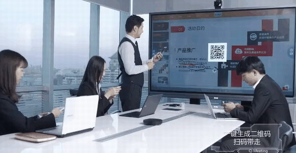 其不僅具有Q-Share無線傳屏的功能,更融入了現代數字化會議室不可或缺的視頻會議、白板書寫、掃碼分享等多種功能,致力于讓會議變得更簡單!
