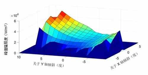 圖 2:散射屏上的峰值輻照度作為輸入陽光角度的函數(shù)