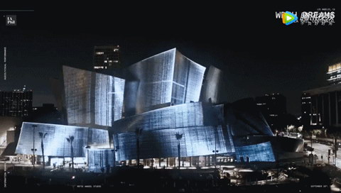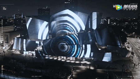 近日,為了紀念洛杉磯愛樂樂團成立100周年,在洛杉磯的標志性建筑華特•迪士尼音樂廳(Walt Disney Concert Hall)的外立面上上演了一場三維投影的夢幻燈光秀。