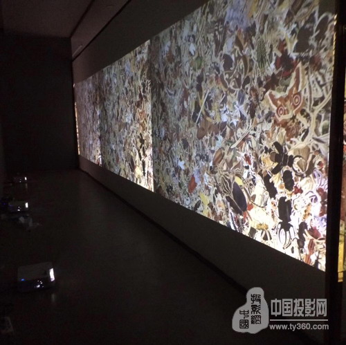 展出作品在展廳的中央用9臺NEC M303HS+高清投影機背投打造出了一個沉浸式通道,將古板的藝術作品用活潑的視頻方式呈現出來,重塑了傳統的藝術溝通與交流。作為強有力的藝術載體,呈現出巨幅斑斕畫面得益于NEC M303HS+非凡的色彩校正技術,使得多臺投影機的色彩能保持一致,展現的畫面均勻而流暢。其擁有著3000流明的高亮度,完全可以滿足美術館、博物館等場所使用。并且在1920x1080全高清分辨率與9000:1的高對比度等規格參數之下,為參觀者提供了清晰、鮮亮、艷麗的投影效果。